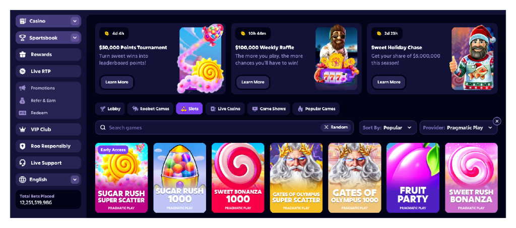 Roobet adds another layer through fast crypto payments, clear game rules, and regular provider promos that reward active betting. This creates a setting where game sessions continue to be engaging, fair, and increasingly exciting. You can make that even better with crypto casino bonuses from Roobet in partnership with Pragmatic Play.